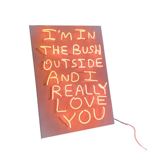 Exclusive to NS - 1/1 pink neon light edition of I'm in the Bush Outside and I Really Love You by Babak Ganjei