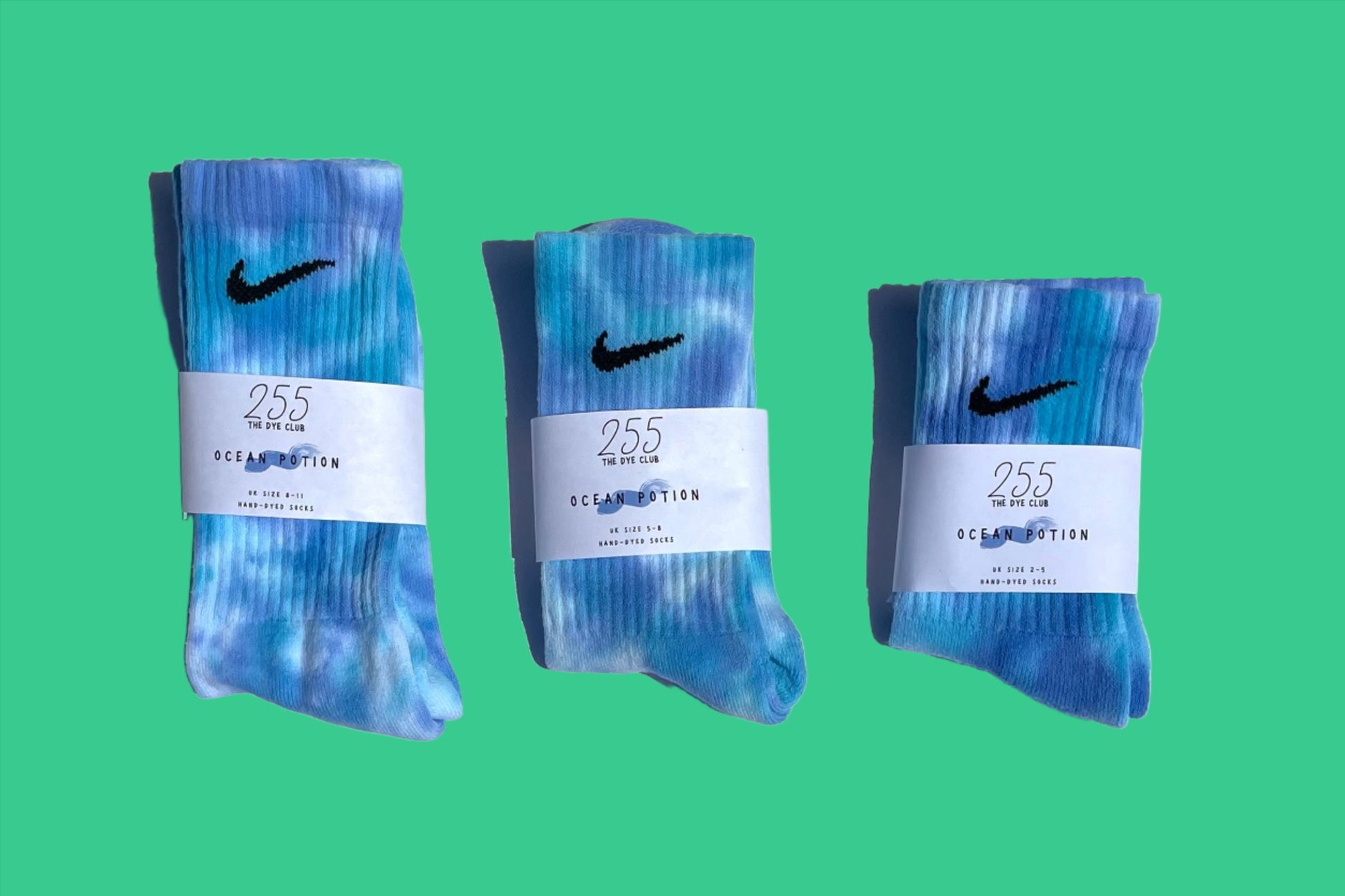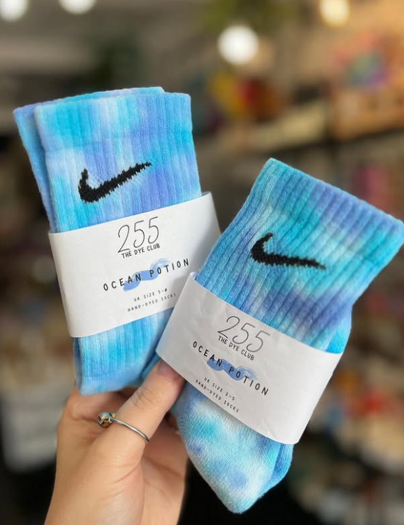 Hand-dyed authentic Nike socks.
