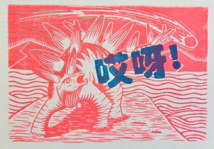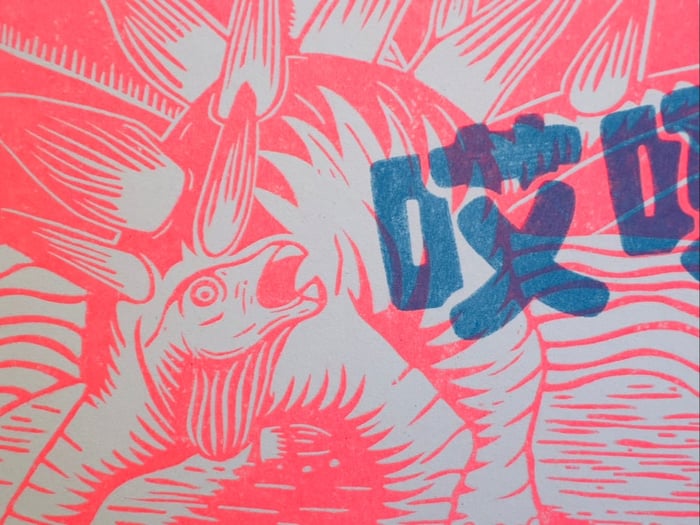 A riso print based on an original hand carved linocut.