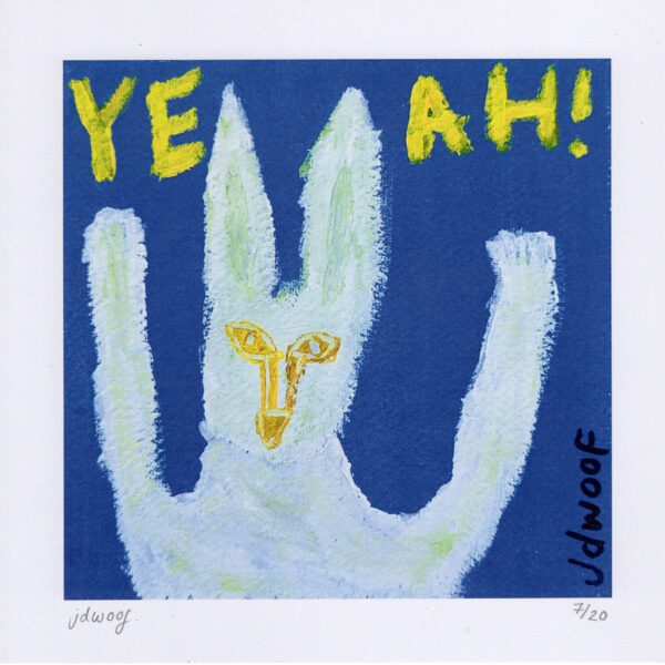 limited print from original "snow hare yeah!" painting by jdwoof. Hand numbered and signed. Printed on 21 x 21 cm archival quality matte paper